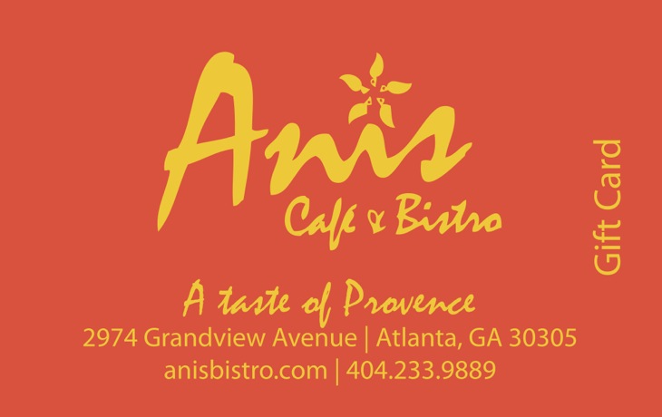 Anis Bistro is located in a converted house that has been renovated to transport its guests to one of the many charming restaurants you're likely to find in Provence. Just imagine a cobblestone street lined with a handful of shops and few sidewalk cafés. And since opening its doors, Anis has been part of the Garden Hills neighborhood. Welcoming and inviting, Anis Bistro is a taste of Provence in the heart of Buckhead. We invite you to taste the difference.